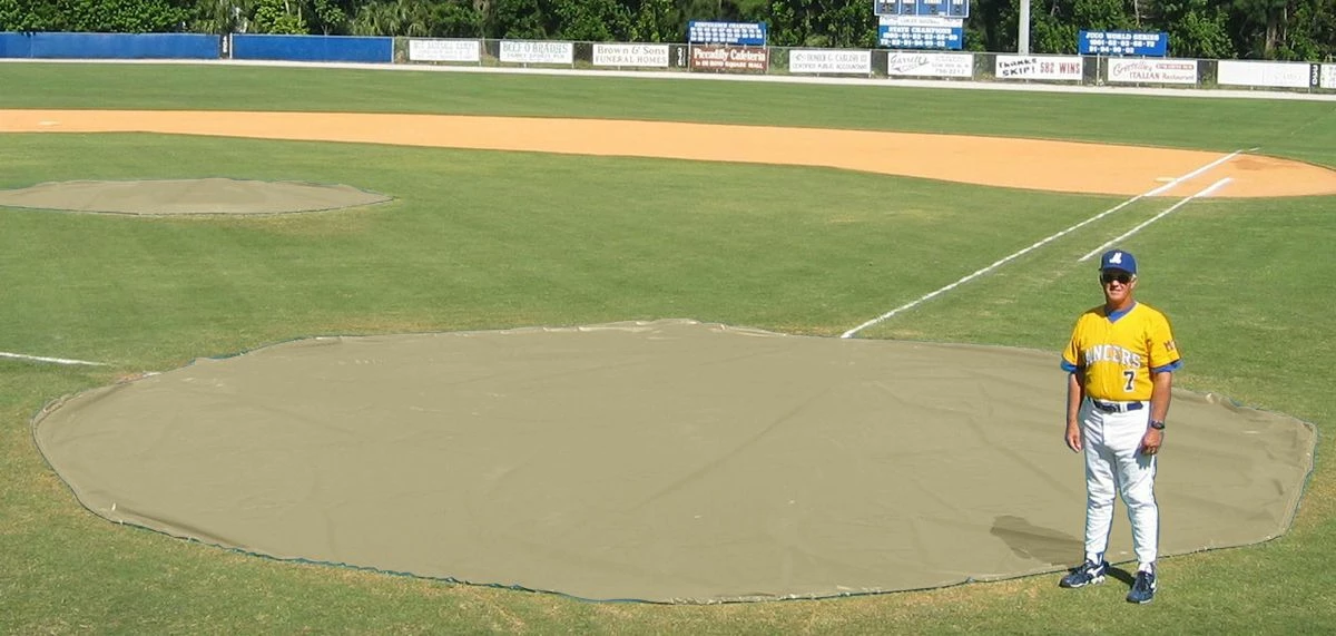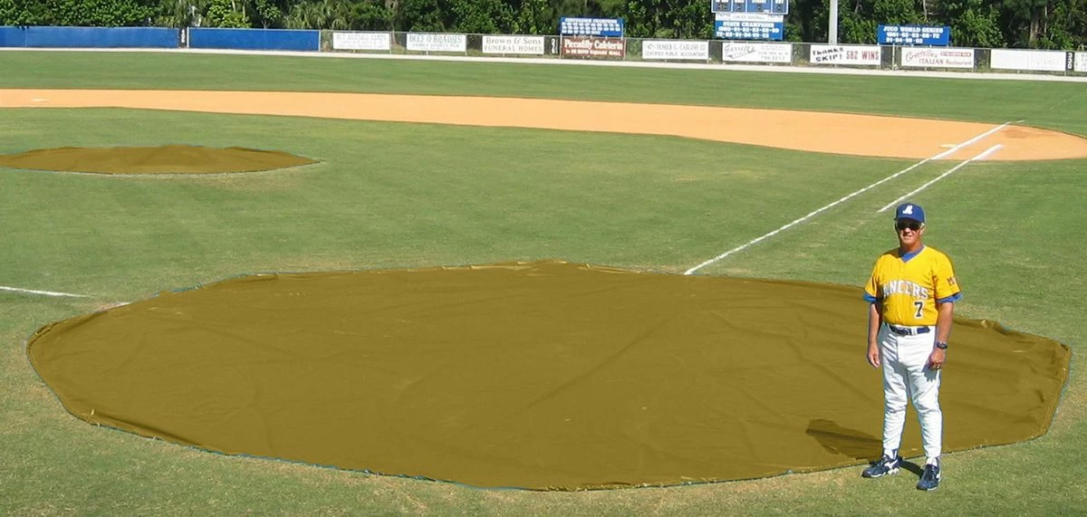 The Aer-Flo WWV1826, 26′ diameter wind weighted mound/homebase tarp weighs 111 lbs and stays put without stakes or sand bags! A steel chain is sewn into the edge hem all around the cover to keep the wind from getting under. These tarps are proven to stay down in winds over 65 miles per hour. Expertly constructed of heavy duty 18oz, UV protected vinyl that will last season after season! Save time by eliminating the need for stakes and sandbags.