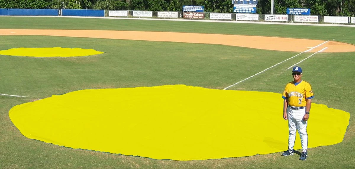 The Aer-Flo WWV1830, 30′ diameter wind weighted mound/homebase tarp weighs 126 lbs and stays put without stakes or sand bags! A steel chain is sewn into the edge hem all around the cover to keep the wind from getting under. These tarps are proven to stay down in winds over 65 miles per hour. Expertly constructed of heavy duty 18oz, UV protected vinyl that will last season after season! Save time by eliminating the need for stakes and sandbags.