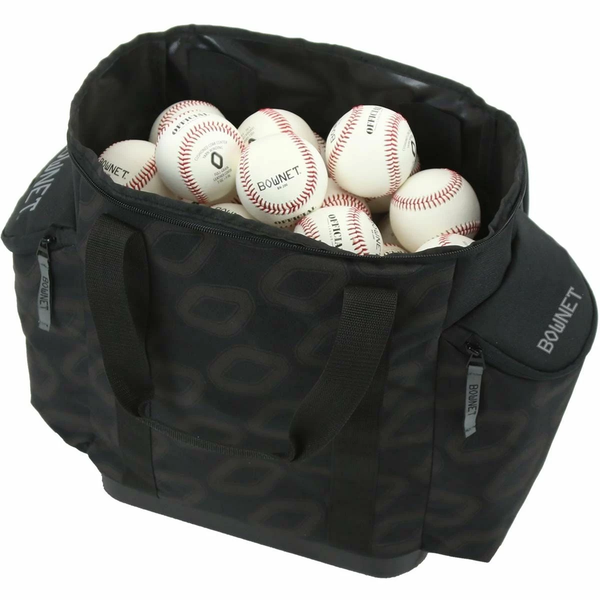Carry your baseballs or softballs to the diamond with ease with the Bownet ball bag. This bag measures 13″ x 8″ x 16″ and holds up to 5 dozen baseballs or 3 dozen softballs. This durable ball bag features a molded bottom and 2 convenient side pockets for accessories. The bag is also equipped with carry handles for easy transport.