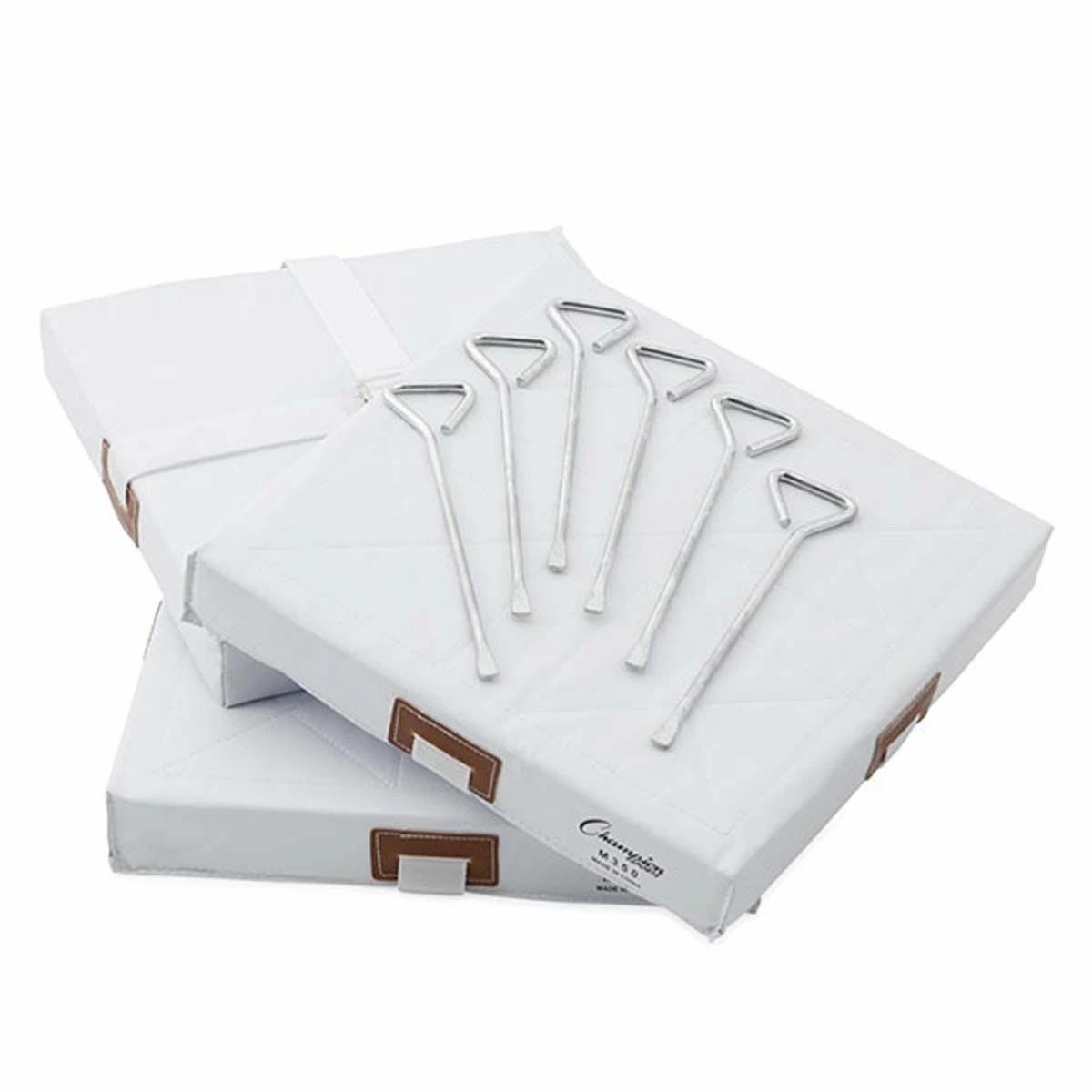 - Includes 3 bases each w/ two nylon web straps & six steel spikes