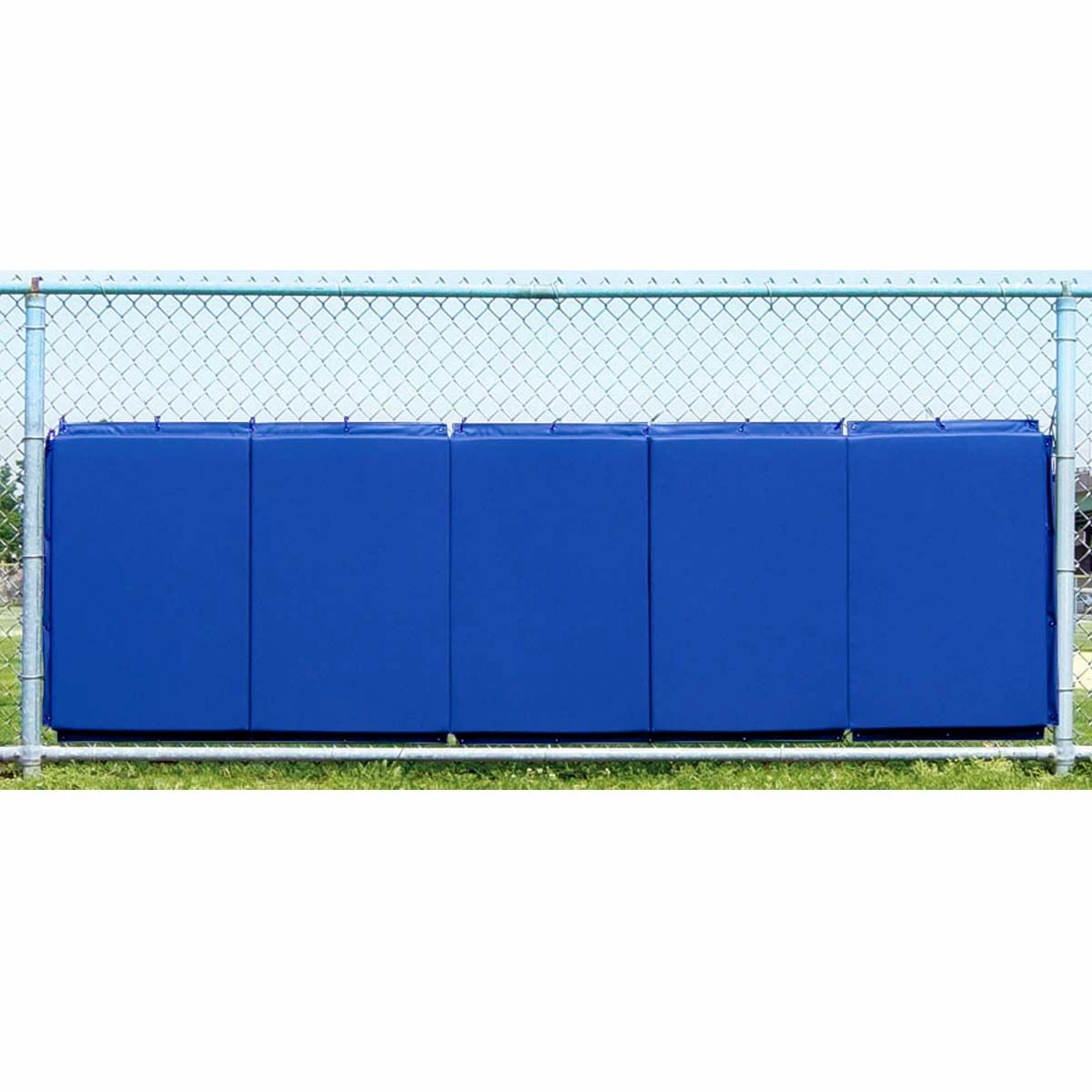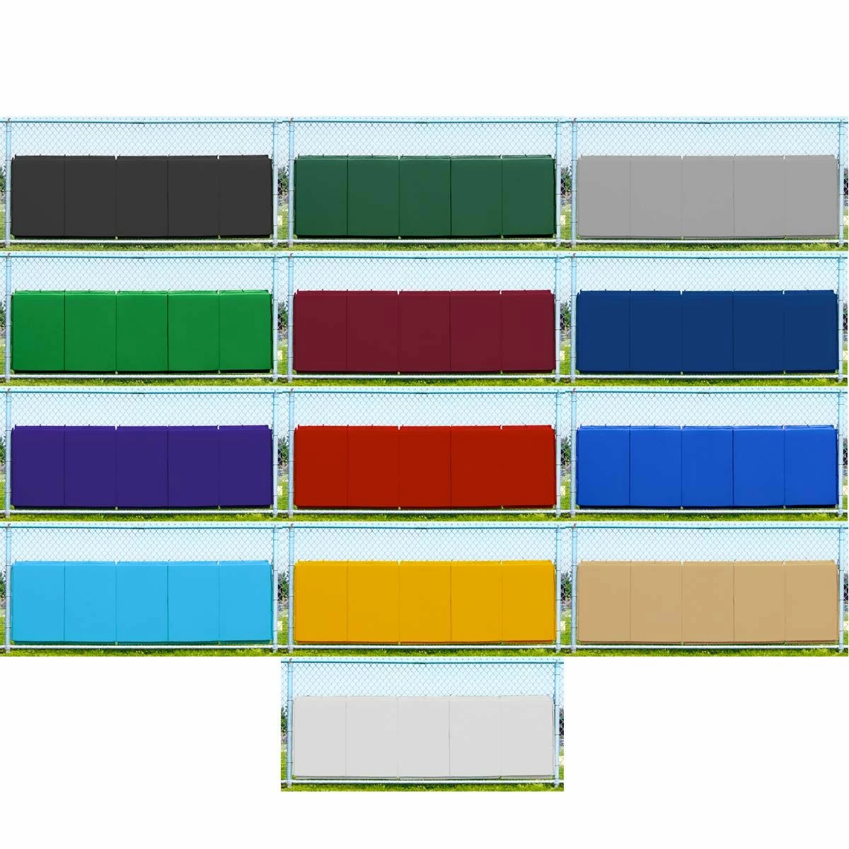 Our 3’H x 10’L backstop padding is crafted from heavy-duty 18 oz. outdoor vinyl and features 2″ poly foam that folds in 2′ sections. When mounted to chain-link, wood or cement backstops, this padding provides player protection and reduces ball bounce-back. Brass grommets are spaced 12″ apart on all four sides for easy attaching.