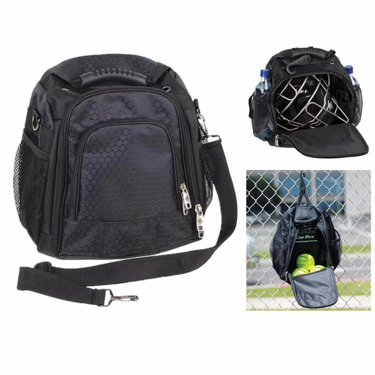 This low-profile umpire’s field bag holds all your on-the-field essentials. The main compartment can hold a umpire helmet/guard and the inside pockets can hold keys and other small items. Additional features include an easy-access fence hook, concealed drop down face guard hook and dual water bottle pockets.