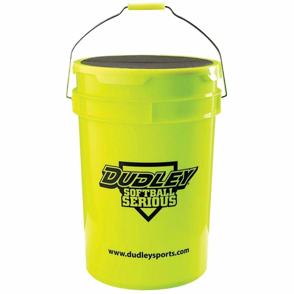 The 6 gallon size Dudley softball bucket can hold up to 2 dozen softballs (sold separately) and features a padded lid that doubles as an extra comfortable seat in the dugout.