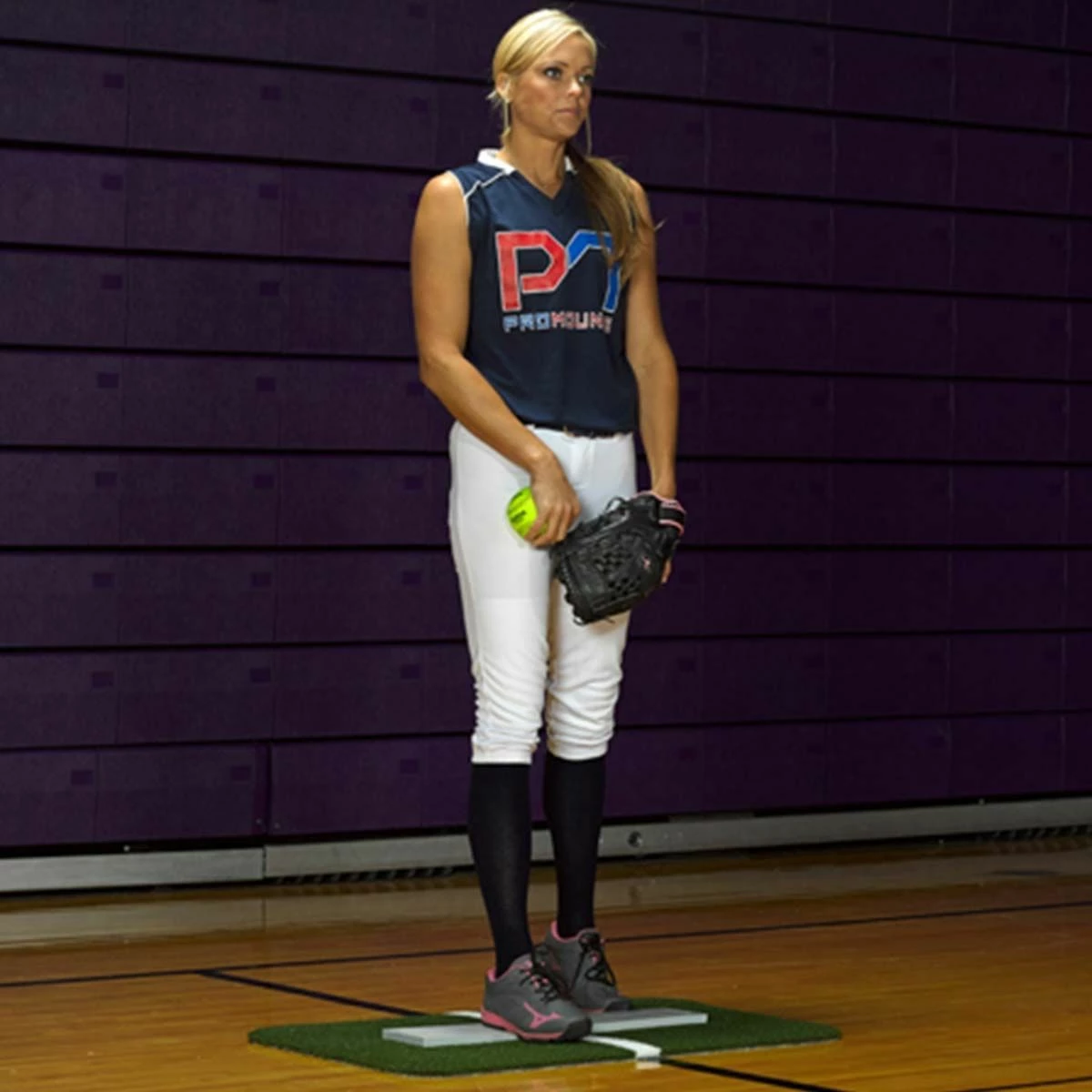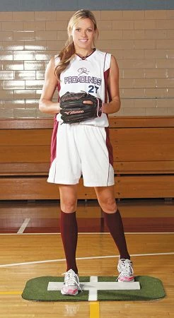 The Jennie Finch Mini softball pitching mat is ultra portable and affordable! A center line easily aligns with the existing gym floor lines for precise training.