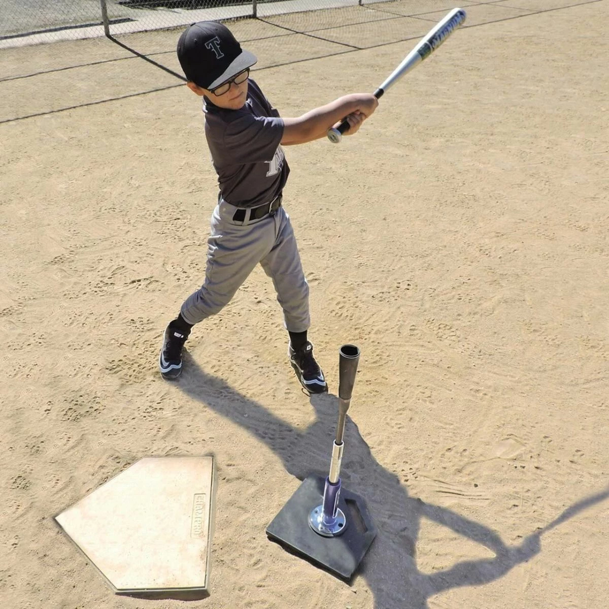 The Jugs combo T batting tee package features 2 interchangeable batting tee stems and 1 base that lets players work at every level of the strike zone. The short tee stem is adjustable from 16” to 23” and the larger tee stem is adjustable from 24” to 46”. The steel base is covered in round rubber edges that won’t scratch or scuff your gym floor and features a grip-n-go handle for easy transport. The always-feel-the-ball flexible top on both stems allow hitters to feel the ball on contact rather than the tee. The patented internal interlocking bolt design prevents slippage of the upper tee stem making the Jugs combo T a high-quality solution for hitting drills at any skill level.