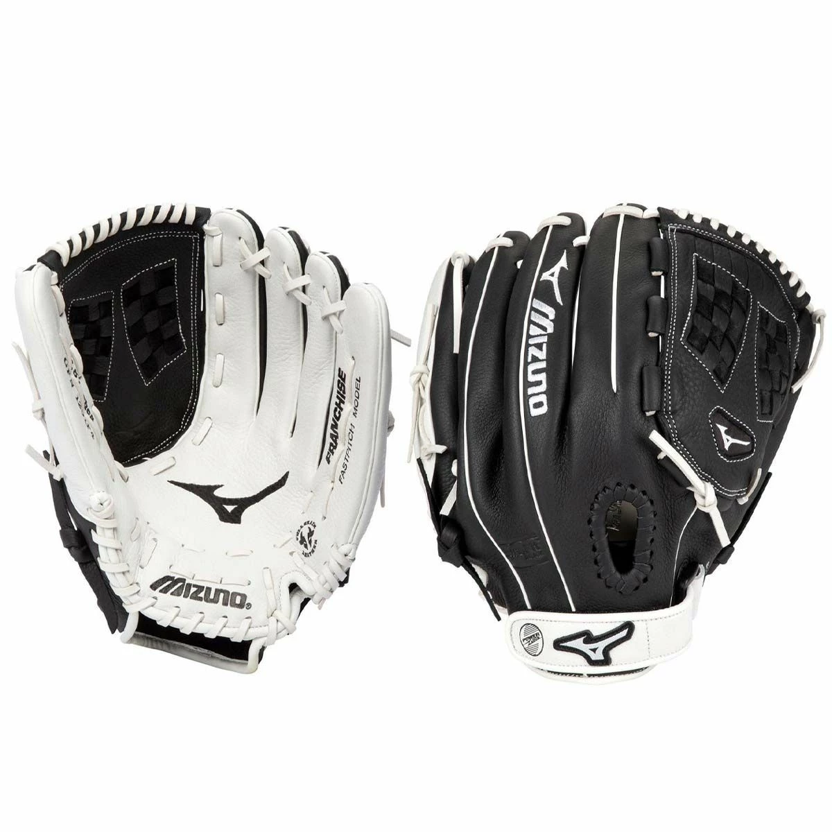 The Mizuno GFN1251F4 12.5″ Franchise fastpitch softball glove is designed specifically for the female softball player. The glove’s pre-oiled full grain leather maintains durability and provides a soft, game-ready feel. The Parashock palm pad provides outstanding protection and comfort. The PowerLock wrist closure provides the quickest and most secure fit available. A double hinge heel with thumb and pinky hinges creates a centered, wider pocket. The QuikForm lace provides the easiest way to tighten the lace throughout the fingers. The gloves’s Hilo lacing, an alternating lace pattern that retains the integrity of a fully-laced web with greater flexibility. The Franchise youth’s 12.5″ size makes it a utility glove that is good for pitchers, infielders and outfielders.