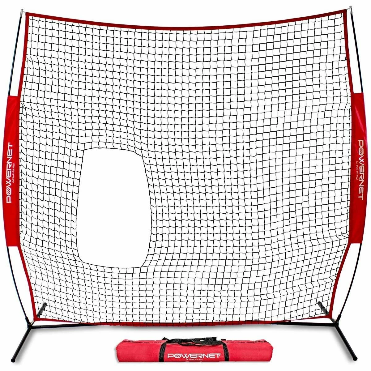 POWERNET offers the only pop-up pitch thru net you can buy as a complete set! You can safely run batting practice with the new softball screen. The screen features a clearing for the pitcher to challenge accuracy or for a pitching machine to operate with. The large 7′ x 7′ net is easily set-up and comes with a convenient carry bag.